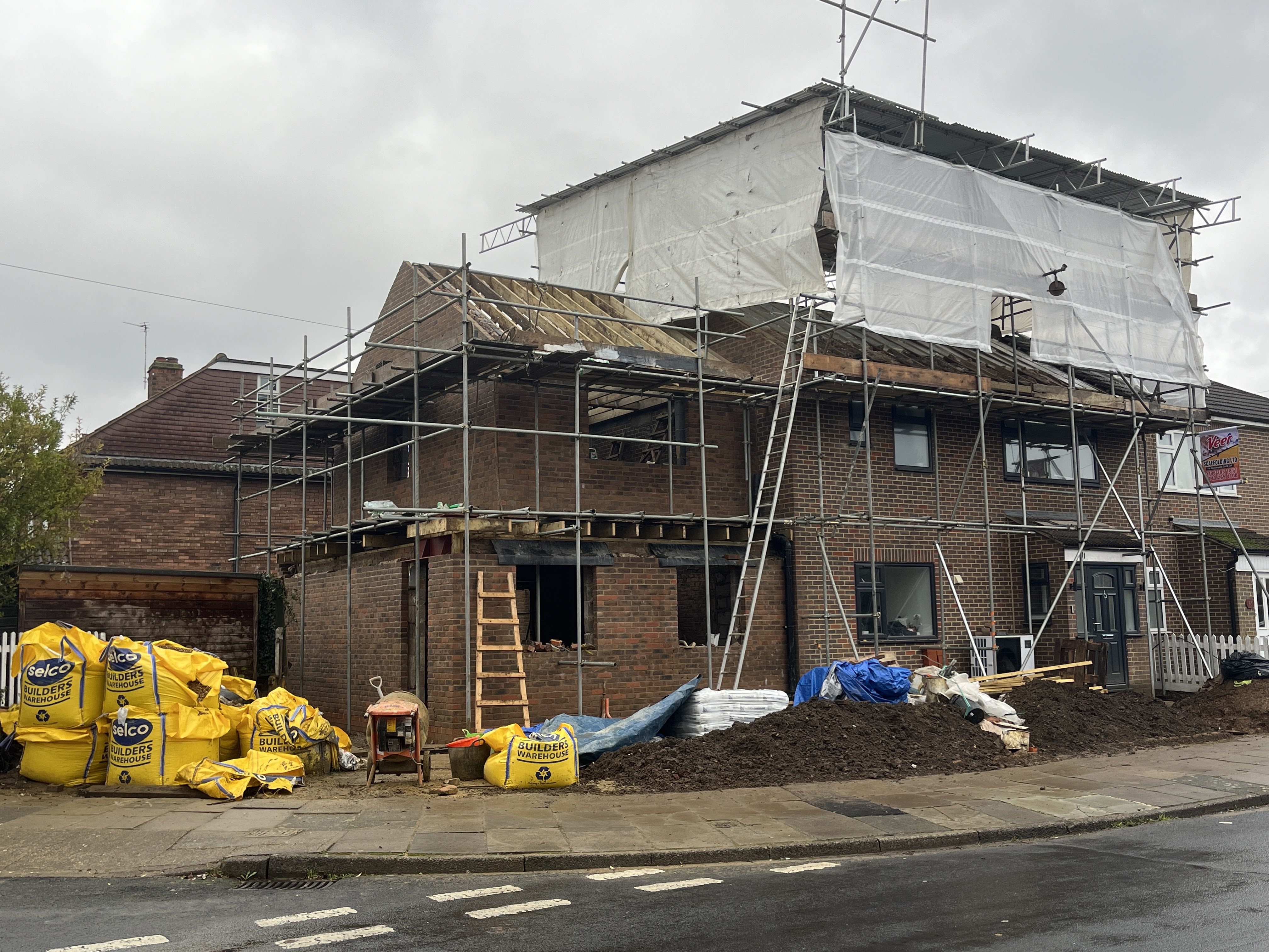 While the work being done on this house in Mariner Gardens is largely obscured by trees a temporary path across the grass confirms that something interesting is going on.